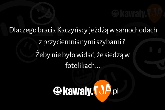 Dlaczego bracia Kaczyńscy jeżdżą w samochodach z przyciemnianymi szybami ? Żeby nie było widać, że siedzą w fotelikach...