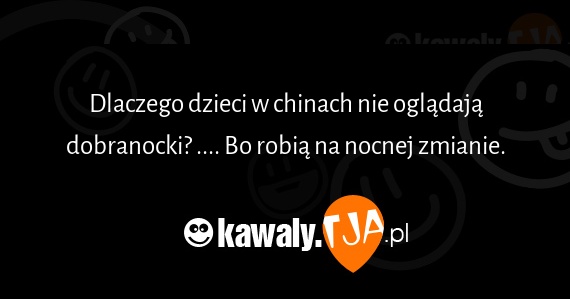 Dlaczego dzieci w chinach nie oglądają dobranocki? .... Bo robią na nocnej zmianie.