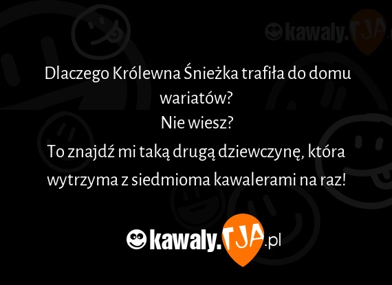 Dlaczego Krolewna Sniezka trafila do domu wariatow? Nie wiesz? To znajdx mi taka druga dziewczyne, ktora wytrzyma z siedmioma kawalerami na raz!