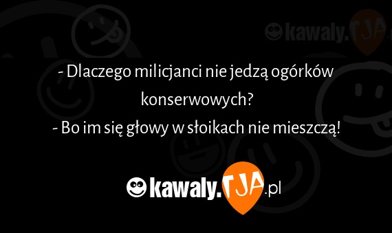 - Dlaczego milicjanci nie jedza ogorkow konserwowych? - Bo im sie glowy w sloikach nie mieszcza!