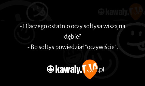 - Dlaczego ostatnio oczy soltysa wisza na debie? - Bo soltys powiedzial "oczywiscie".