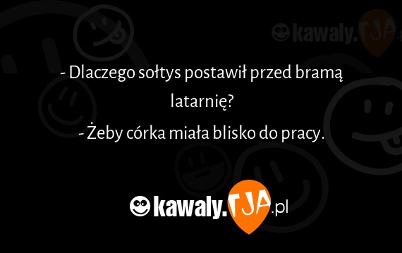 - Dlaczego soltys postawil przed brama latarnie? - Zeby corka miala blisko do pracy.