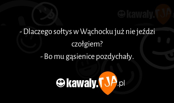 - Dlaczego sołtys w Wąchocku już nie jeździ czołgiem? - Bo mu gąsienice pozdychały.