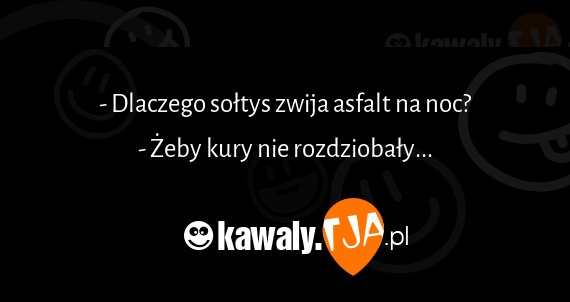- Dlaczego soltys zwija asfalt na noc? - Zeby kury nie rozdziobaly...