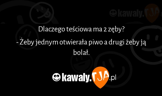 Dlaczego tesciowa ma 2 zeby? - Zeby jednym otwierala piwo a drugi zeby ja bolal.