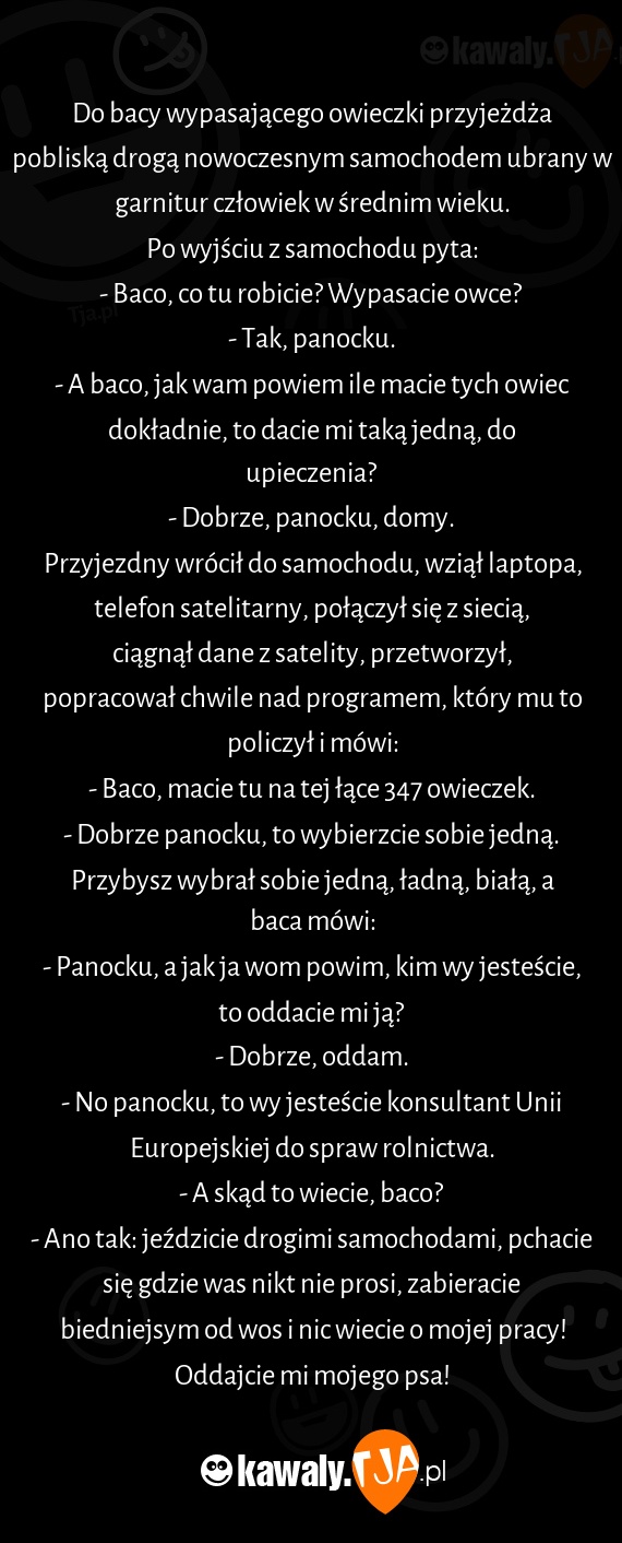 Przybysz wybrał sobie jedną, ładną, białą, a baca mówi: