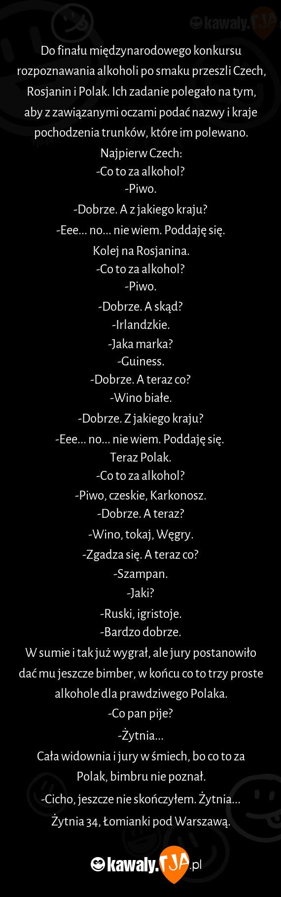 W sumie i tak już wygrał, ale jury postanowiło dać mu jeszcze bimber, w końcu co to trzy proste alkohole dla prawdziwego Polaka.