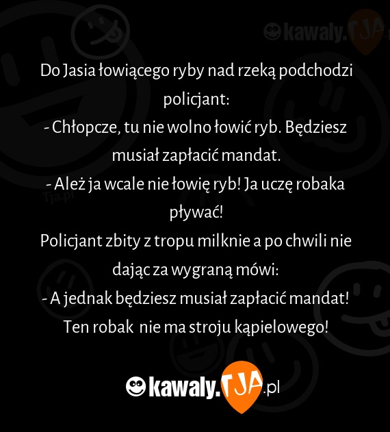 - Chłopcze, tu nie wolno łowić ryb. Będziesz musiał zapłacić mandat.