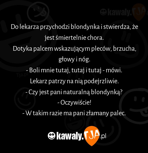 Do lekarza przychodzi blondynka i stwierdza, że jest śmiertelnie chora.