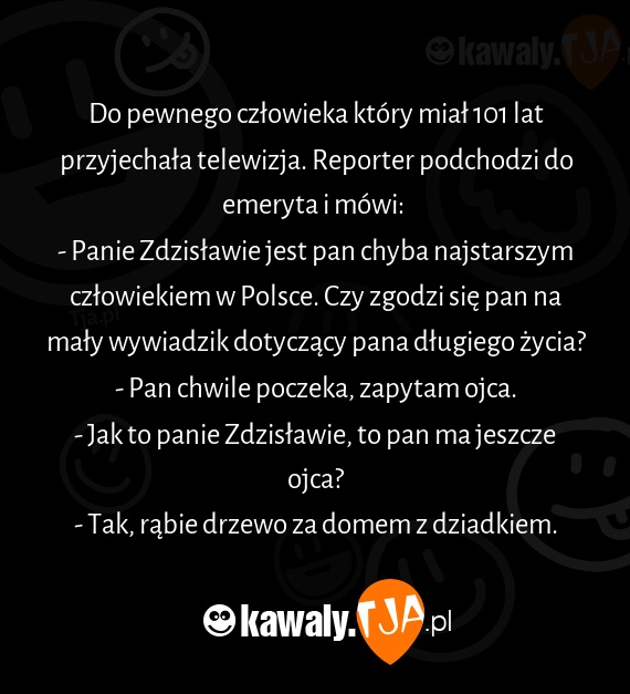 Do pewnego człowieka który miał 101 lat przyjechała telewizja. Reporter podchodzi do emeryta i mówi: