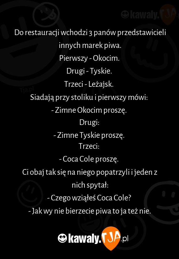 Do restauracji wchodzi 3 panów przedstawicieli innych marek piwa.