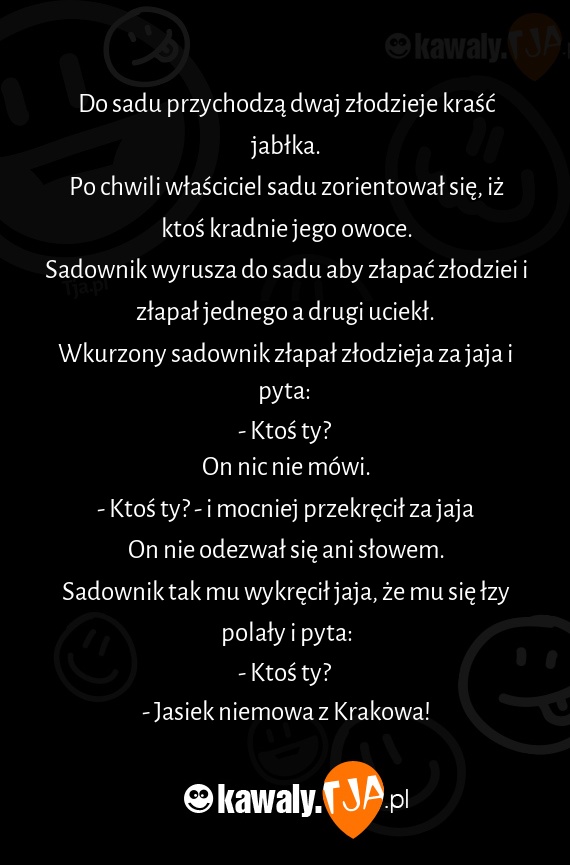 Wkurzony sadownik złapał złodzieja za jaja i pyta: