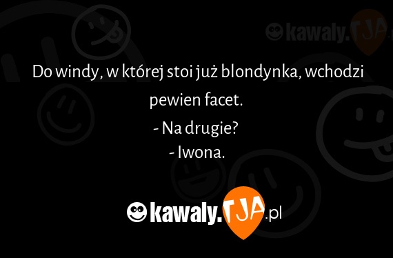 Do windy, w której stoi już blondynka, wchodzi pewien facet. - Na drugie? - Iwona.