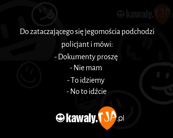 Do zataczajacego sie jegomoscia podchodzi policjant i mowi: - Dokumenty prosze - Nie mam - To idziemy - No to idxcie