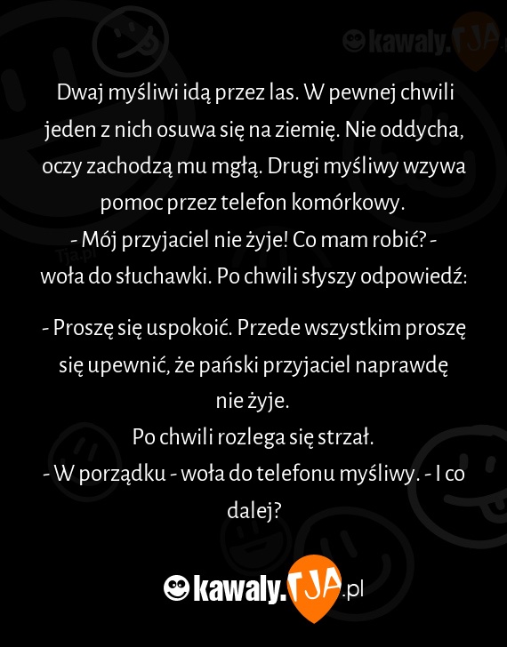 - Mój przyjaciel nie żyje! Co mam robić? - woła do słuchawki. Po chwili słyszy odpowiedź: