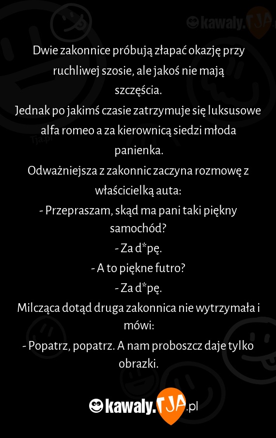 Milcząca dotąd druga zakonnica nie wytrzymała i mówi: