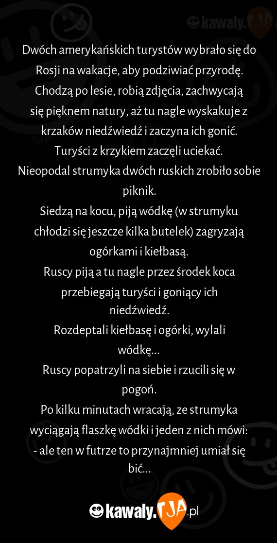 Ruscy piją a tu nagle przez środek koca przebiegają turyści i goniący ich niedźwiedź.