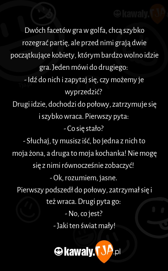 - Słuchaj, ty musisz iść, bo jedna z nich to moja żona, a druga to moja kochanka! Nie mogę się z nimi równocześnie zobaczyć!