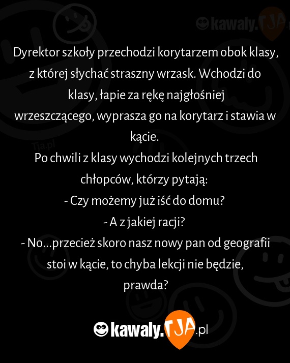 - No...przecież skoro nasz nowy pan od geografii stoi w kącie, to chyba lekcji nie będzie, prawda?