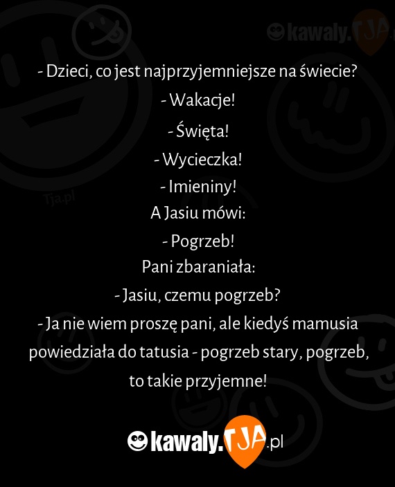 - Ja nie wiem proszę pani, ale kiedyś mamusia powiedziała do tatusia - pogrzeb stary, pogrzeb, to takie przyjemne!