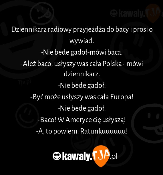 Dziennikarz radiowy przyjeżdża do bacy i prosi o wywiad.