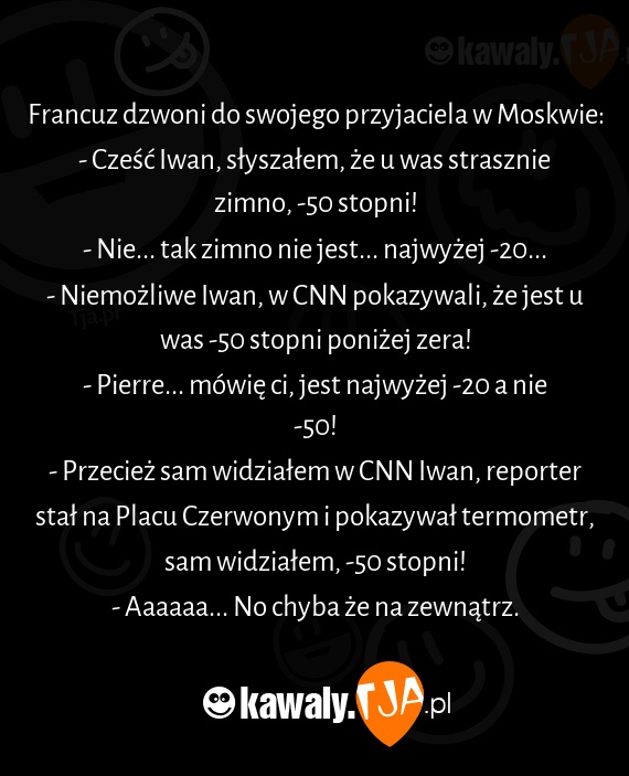 - Cześć Iwan, słyszałem, że u was strasznie zimno, -50 stopni!