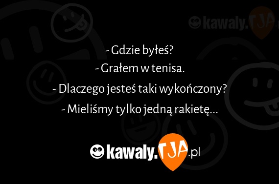 - Gdzie byles? - Gralem w tenisa. - Dlaczego jestes taki wykonczony? - Mielismy tylko jedna rakiete...