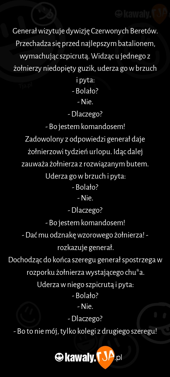 - Dać mu odznakę wzorowego żołnierza! - rozkazuje generał.
