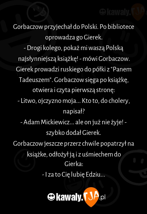 - Drogi kolego, pokaż mi waszą Polską najsłynniejszą książkę! - mówi Gorbaczow.
