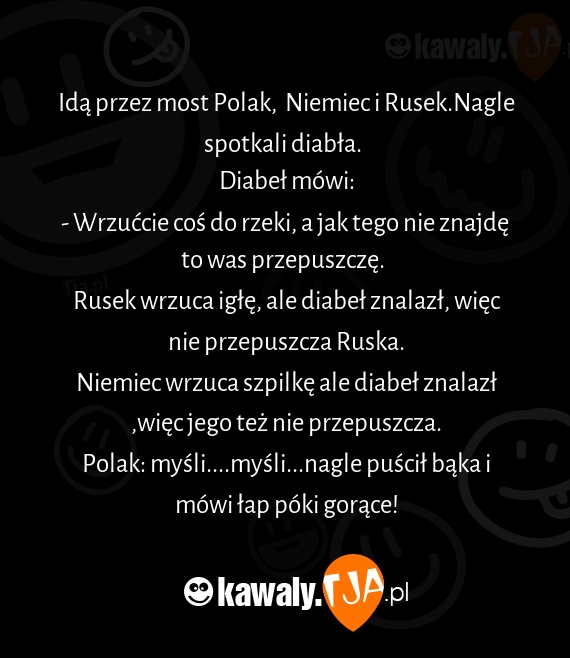 Idą przez most Polak, Niemiec i Rusek.Nagle spotkali diabła.