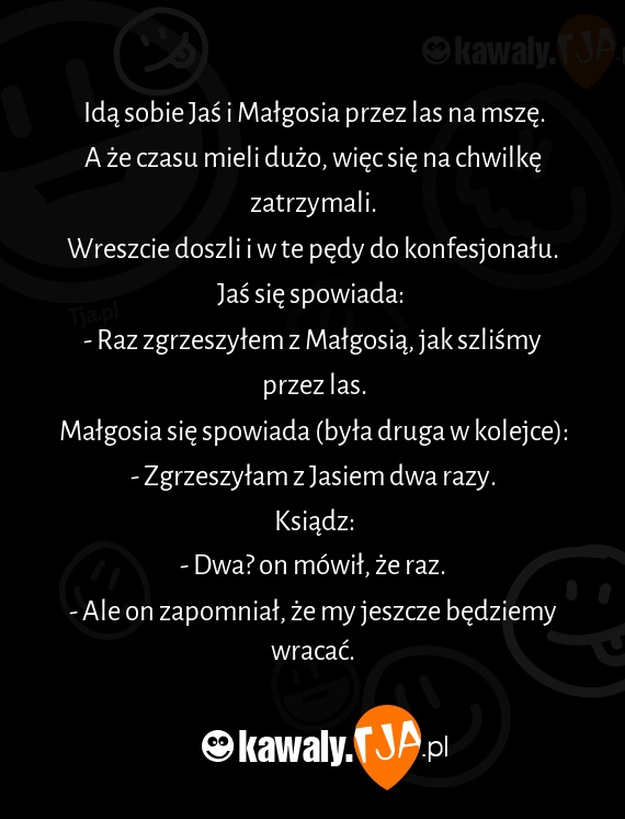Idą sobie Jaś i Małgosia przez las na mszę.