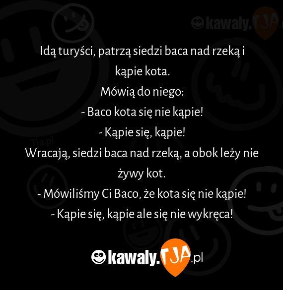 Wracają, siedzi baca nad rzeką, a obok leży nie żywy kot.
