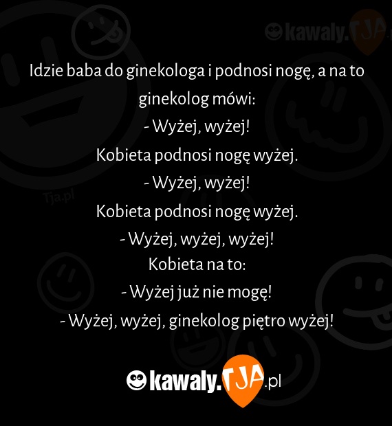 Idzie baba do ginekologa i podnosi nogę, a na to ginekolog mówi: