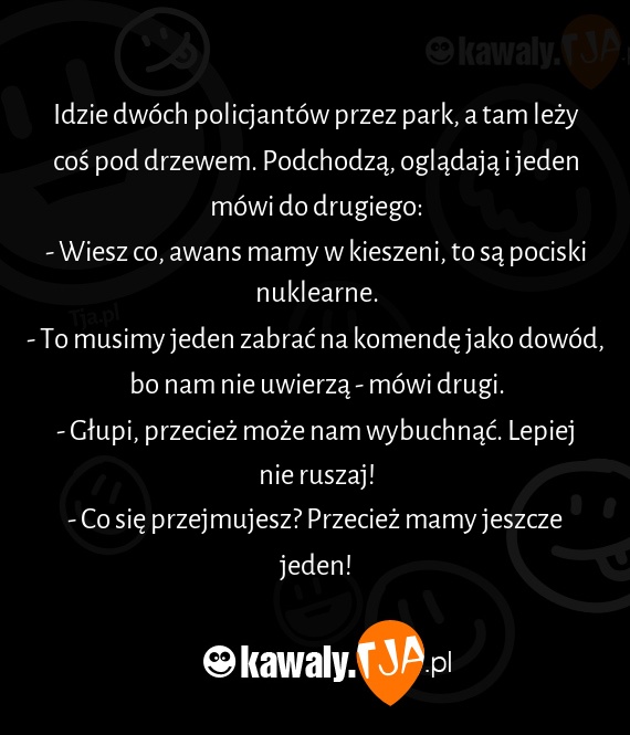 Idzie dwóch policjantów przez park, a tam leży coś pod drzewem. Podchodzą, oglądają i jeden mówi do drugiego:
