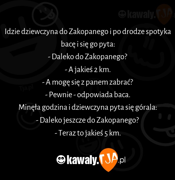 Idzie dziewczyna do Zakopanego i po drodze spotyka bacę i się go pyta:
