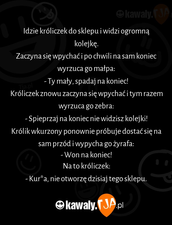 Idzie króliczek do sklepu i widzi ogromną kolejkę.