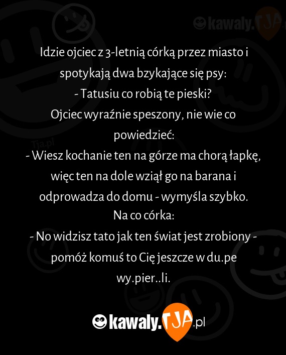 Idzie ojciec z 3-letnią córką przez miasto i spotykają dwa bzykające się psy: