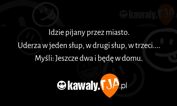 Idzie pijany przez miasto. Uderza w jeden słup, w drugi słup, w trzeci.... Myśli: Jeszcze dwa i będę w domu.