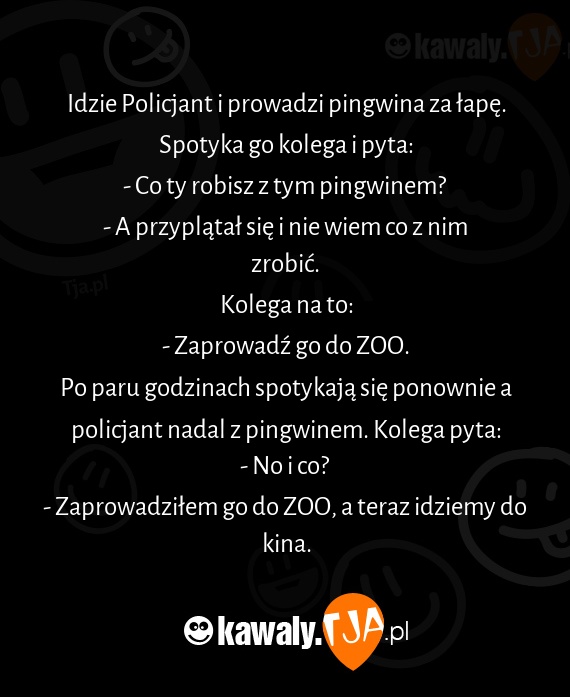 Idzie Policjant i prowadzi pingwina za łapę. Spotyka go kolega i pyta: