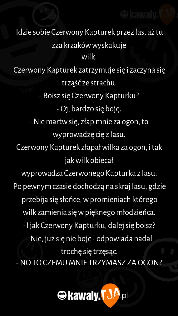 Czerwony Kapturek złapał wilka za ogon, i tak jak wilk obiecał