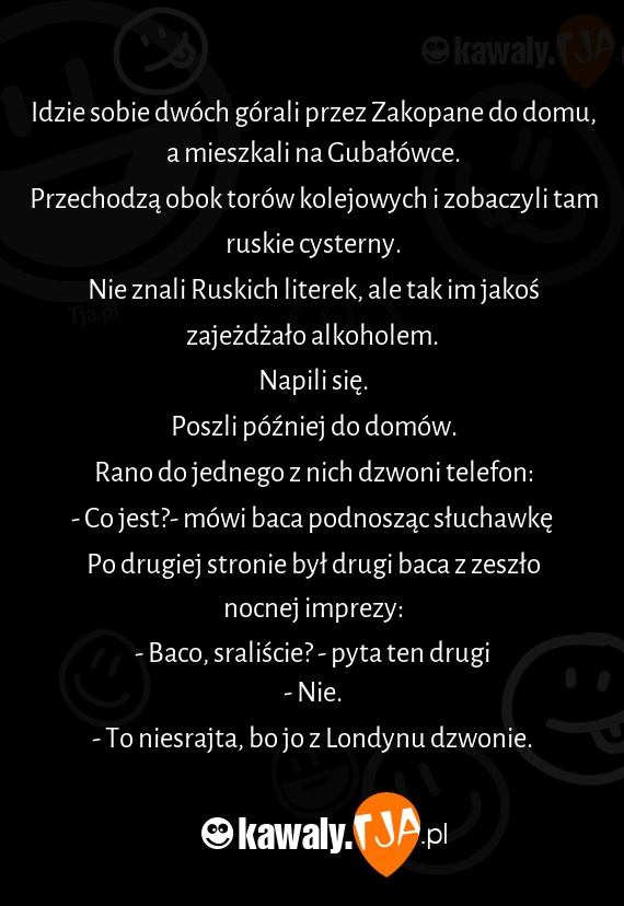 Idzie sobie dwóch górali przez Zakopane do domu, a mieszkali na Gubałówce.