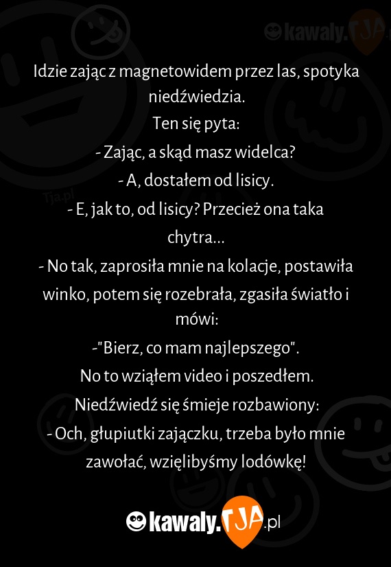 Idzie zając z magnetowidem przez las, spotyka niedźwiedzia.