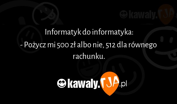 Informatyk do informatyka: - Pożycz mi 500 zł albo nie, 512 dla równego rachunku.