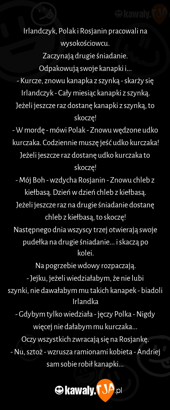 Irlandczyk, Polak i Rosjanin pracowali na wysokościowcu.