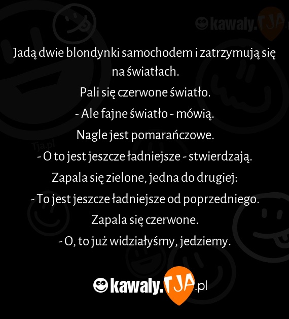 Jadą dwie blondynki samochodem i zatrzymują się na światłach.