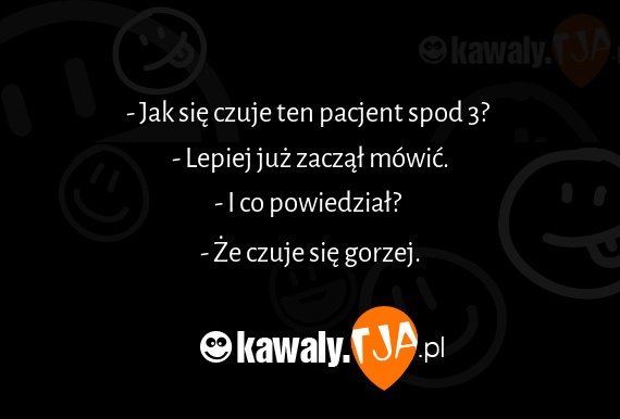 - Jak sie czuje ten pacjent spod 3? - Lepiej juz zaczal mowic. - I co powiedzial? - Ze czuje sie gorzej.