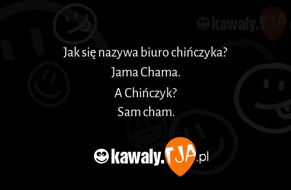 Jak sie nazywa biuro chinczyka? Jama Chama. A Chinczyk? Sam cham.