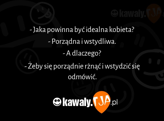 - Jaka powinna byc idealna kobieta? - Porzadna i wstydliwa. - A dlaczego? - Zeby sie porzadnie rznac i wstydzic sie odmowic.