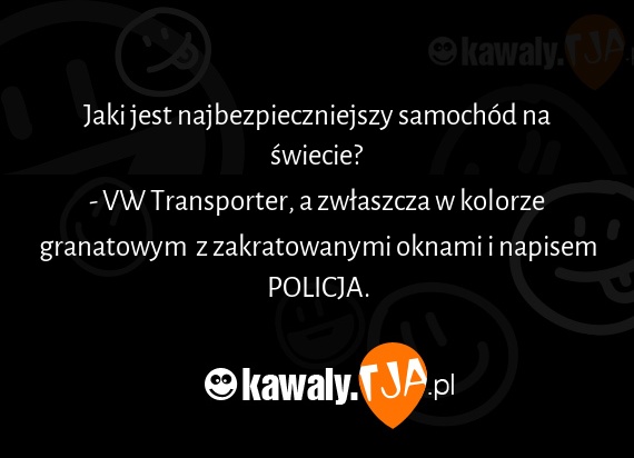 Jaki jest najbezpieczniejszy samochód na świecie? - VW Transporter, a zwłaszcza w kolorze granatowym z zakratowanymi oknami i napisem POLICJA.