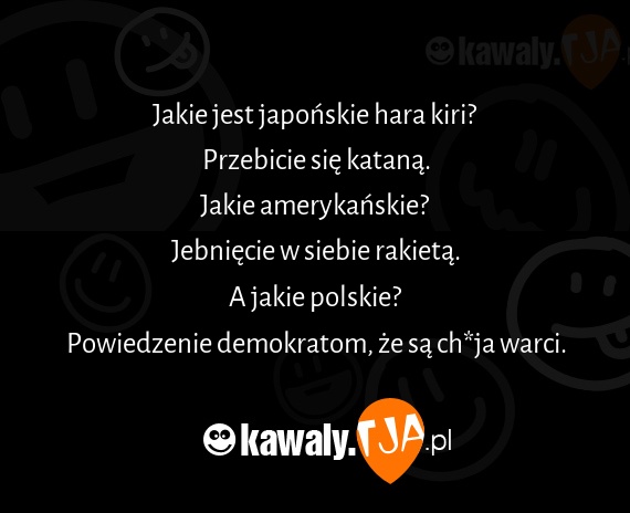 Jakie jest japońskie hara kiri? Przebicie się kataną. Jakie amerykańskie? Jebnięcie w siebie rakietą. A jakie polskie? Powiedzenie demokratom, że są ch*ja warci.
